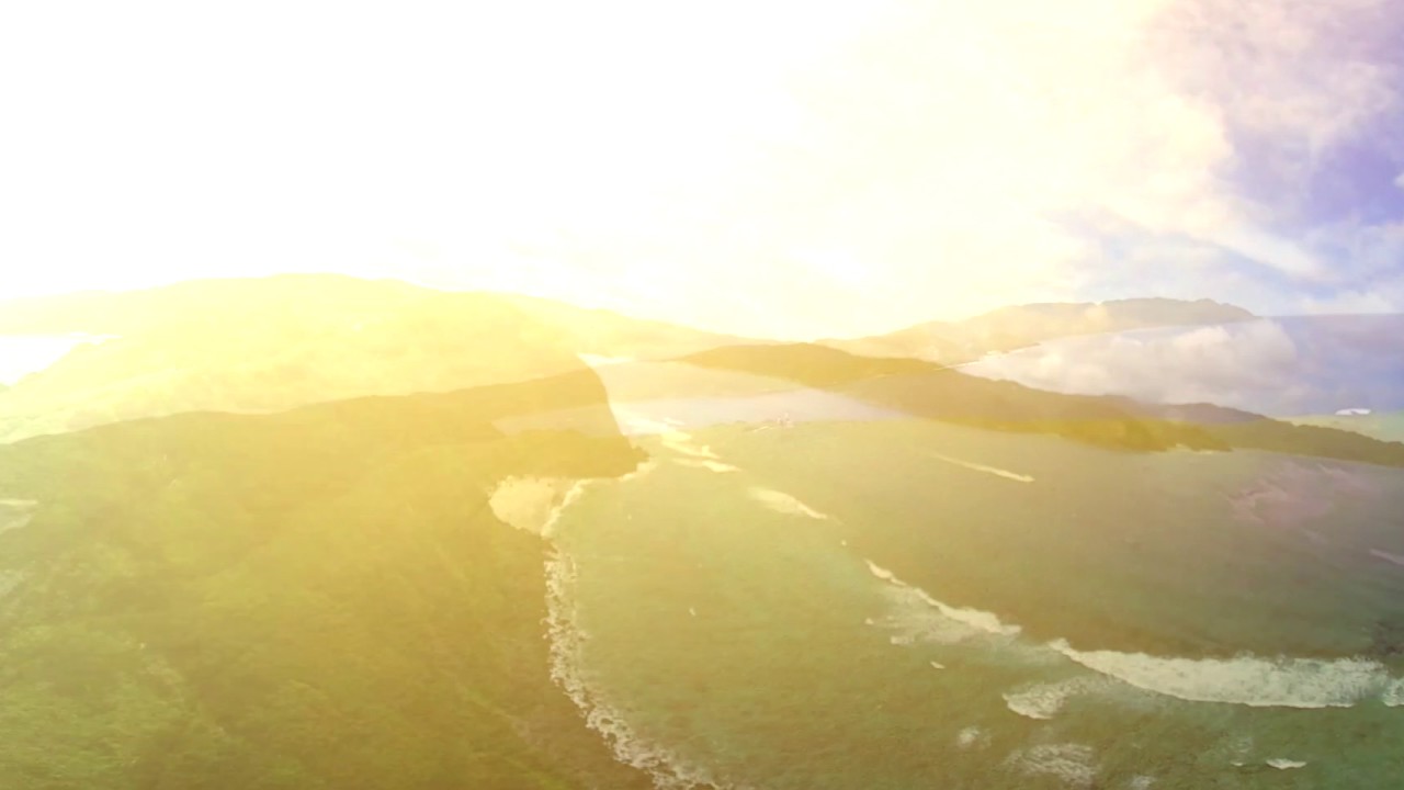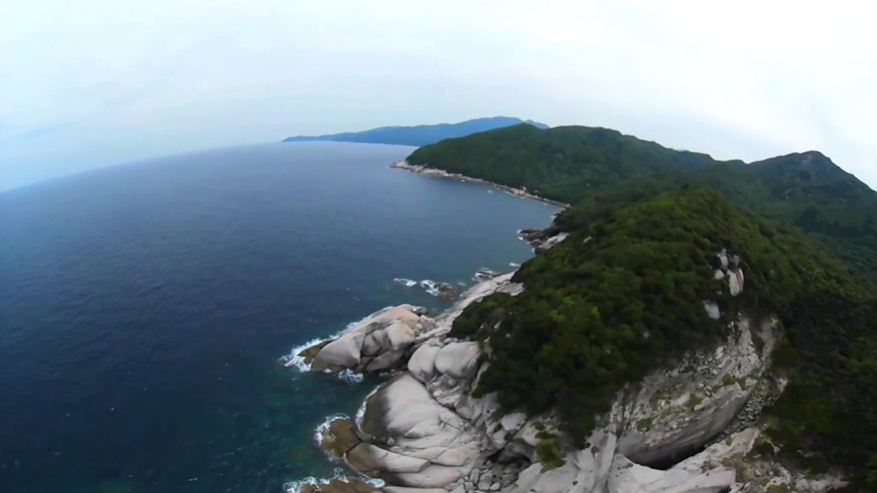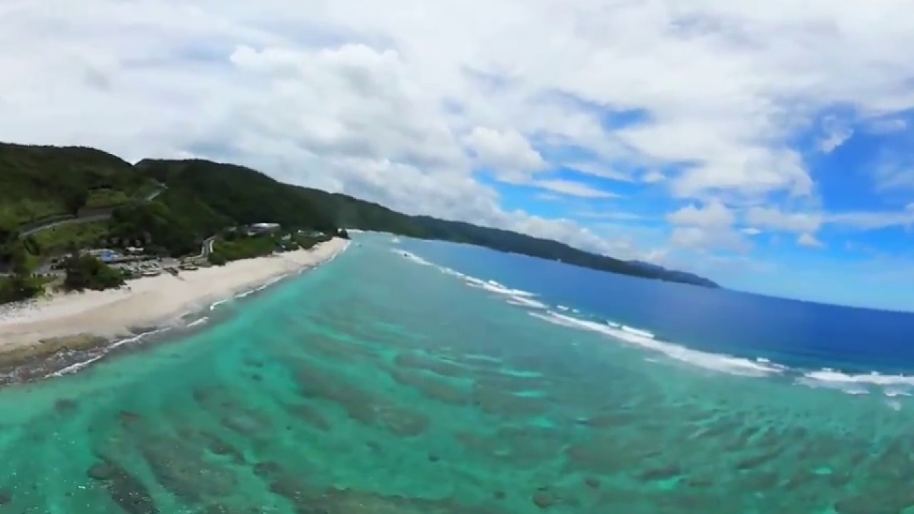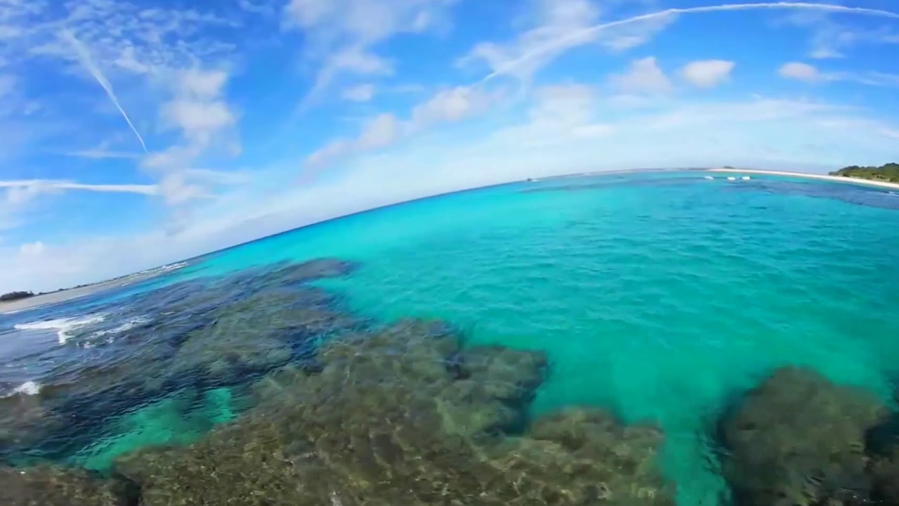 日本の水浴場88選にも選ばれた場所。上空から種子島を一望。