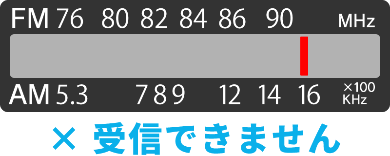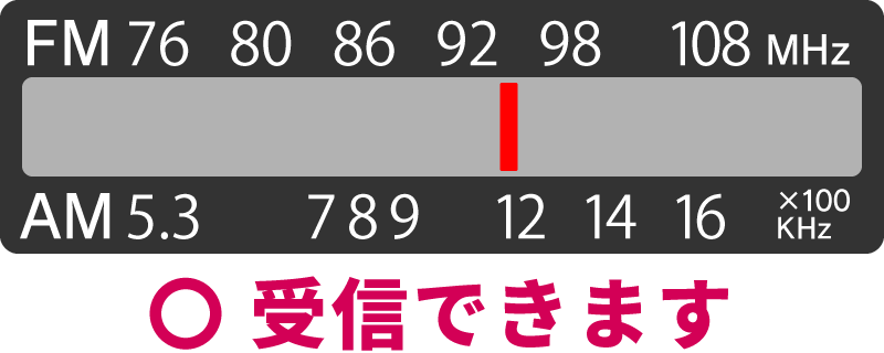 ただし、お持ちのFMラジオが90MHz以下しか受信できない昔のラジオだと受信できません。