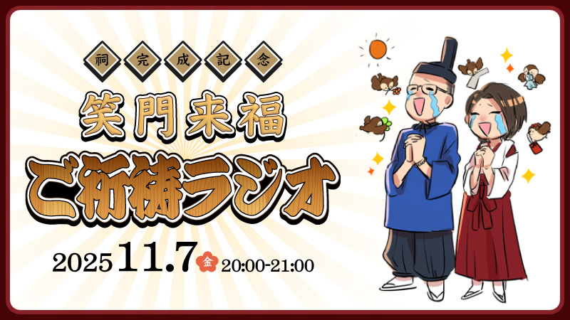 「私は神さまだ」と日々ご祈祷を続けるうちに いつしか「采神さま」と呼ばれるようになった摩訶不思議な神様とお送りする一時間。 先日RN.ミニモクさんのご厚意で見事な「祠」が完成!!狂喜乱舞する采神さまは 「神度」が爆上がりしているに違いない!!当日はラジオネームミニモクさんをお招きし「祠」もお披露目。お楽しみに。