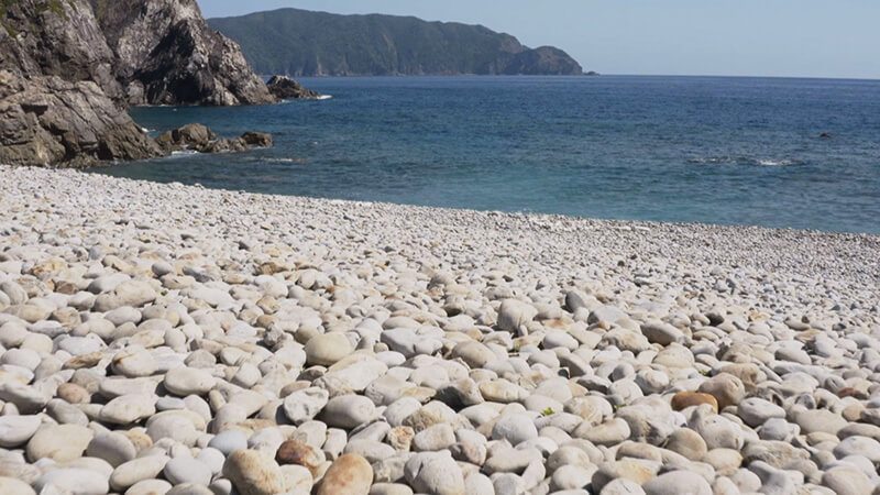 太平洋の荒波にもまれた、きれいな丸石が無数に広がる風景。打ち寄せる波の音と、波の力でぶつかり合う、丸石どうしが奏でる独特の音がパワーをもたらすかも!?