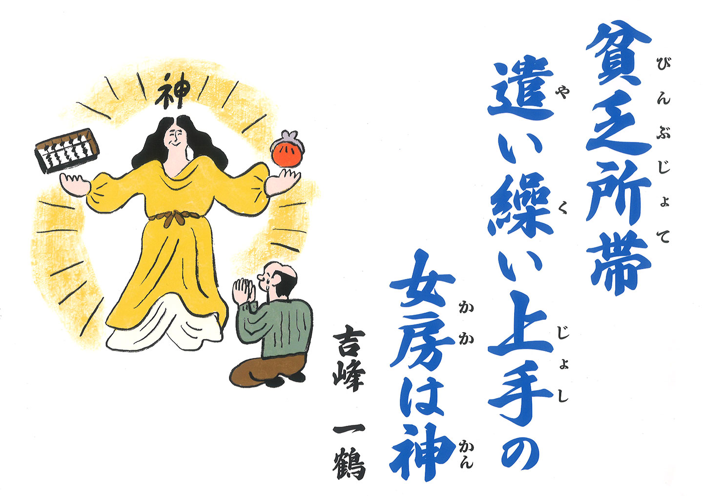- 貧乏所帯 遣い繰い上手の 女房は神 (吉峰 一鶴)