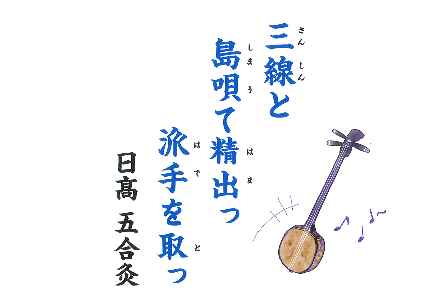 - 三線と 島唄て精出っ 派手を取っ (日髙 五合灸)