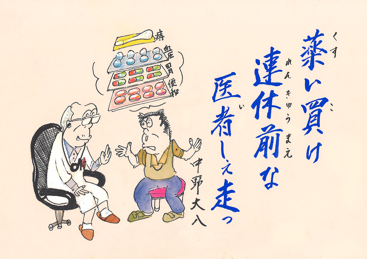 - 薬い買け 連休前な 医者しぇ走っ (中野 大八)