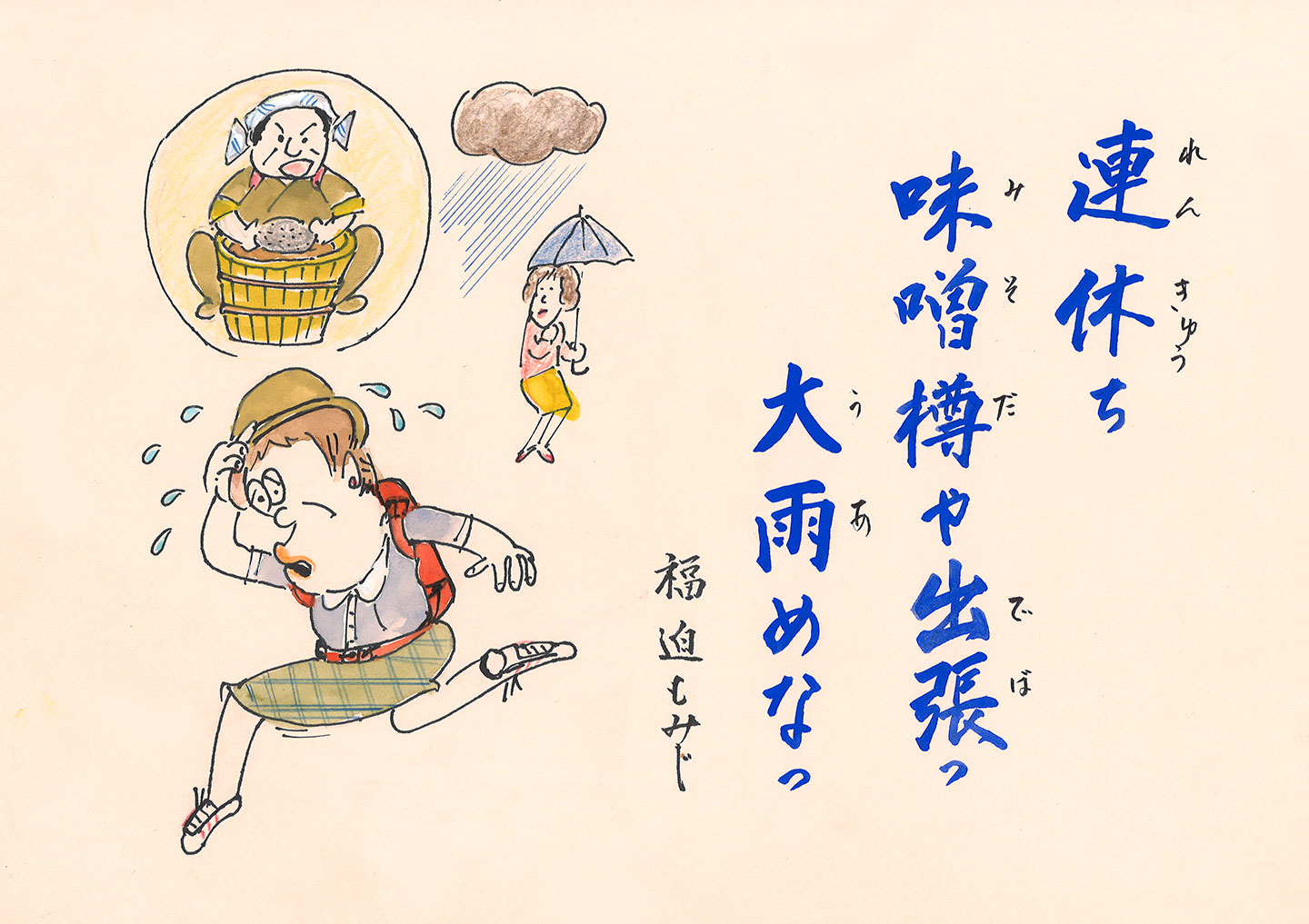 - 連休ち 味噌樽や出張っ 大雨めなっ (福迫 もみじ)
