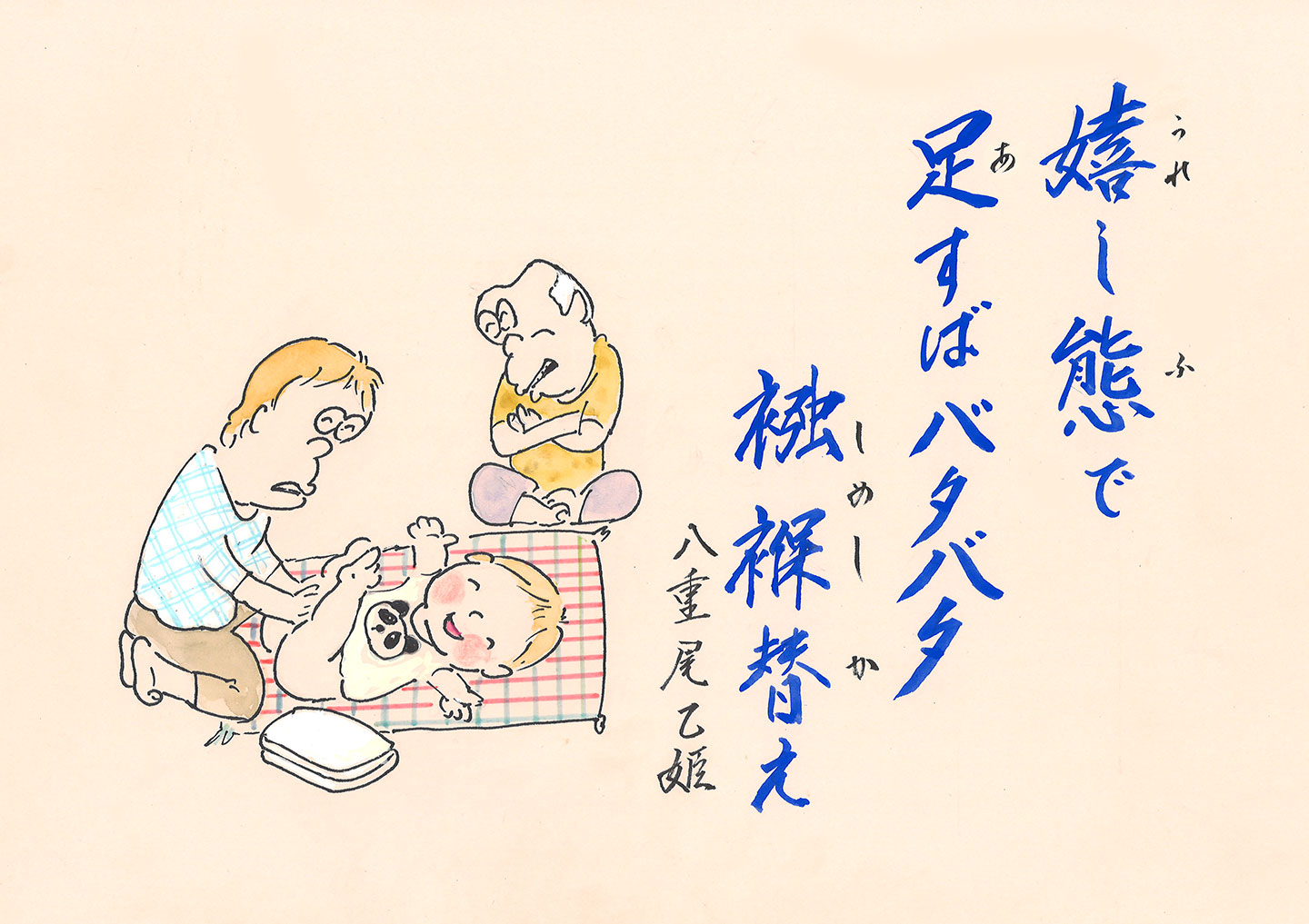 - 嬉し態で 足すばバタバタ 襁褓替え (八重尾 乙姫)