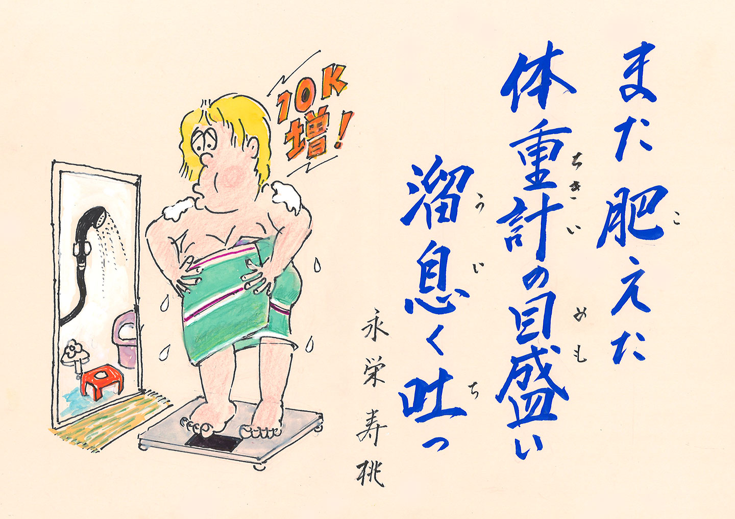 - また肥えた 体重計の目盛い 溜息く吐っ (永栄 寿桃)
