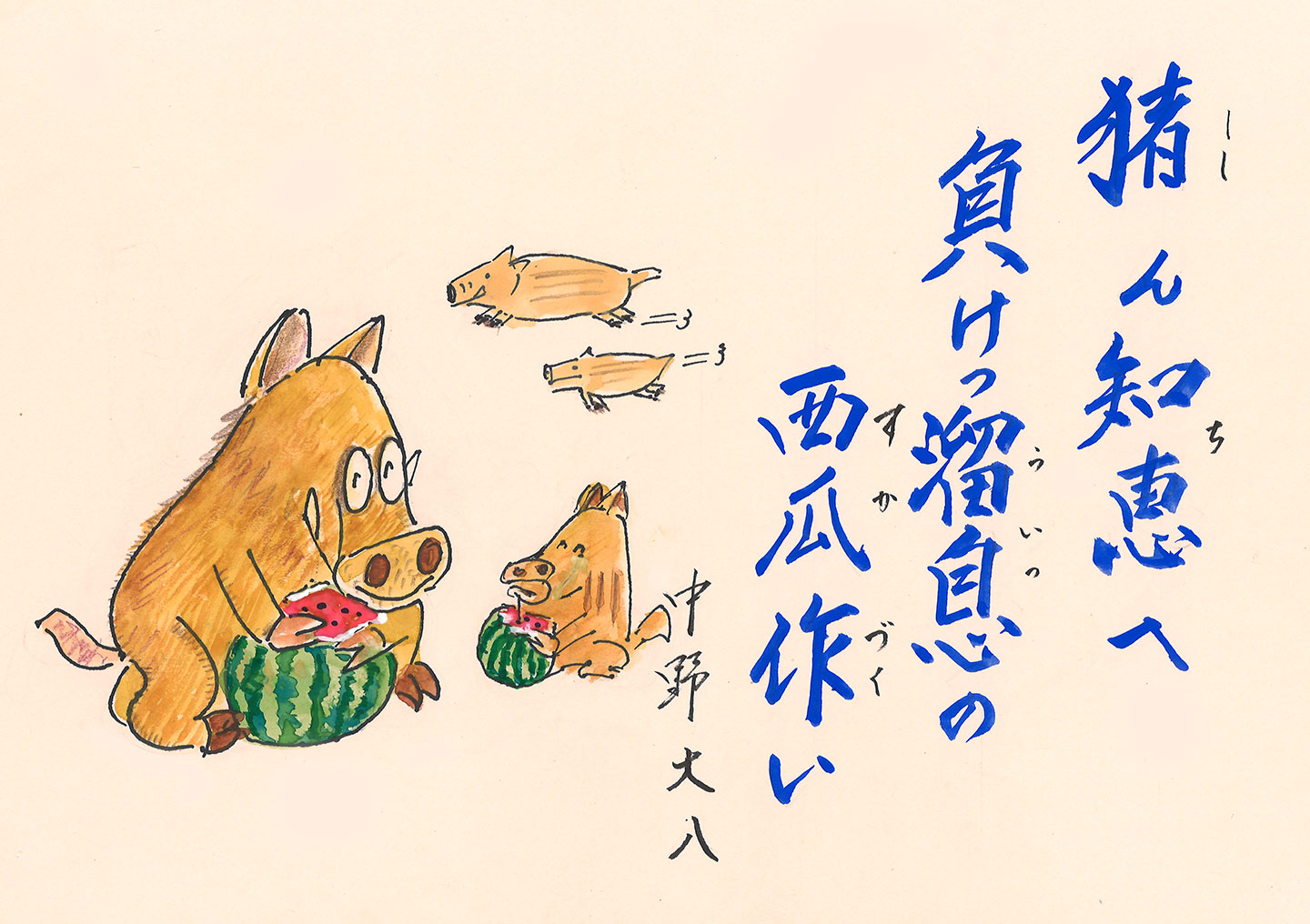 - 猪ん知恵へ 負けっ溜息の 西瓜作い (中野 大八)