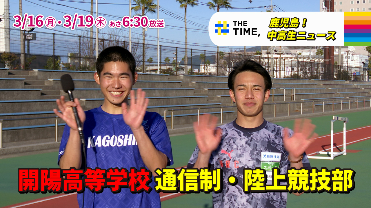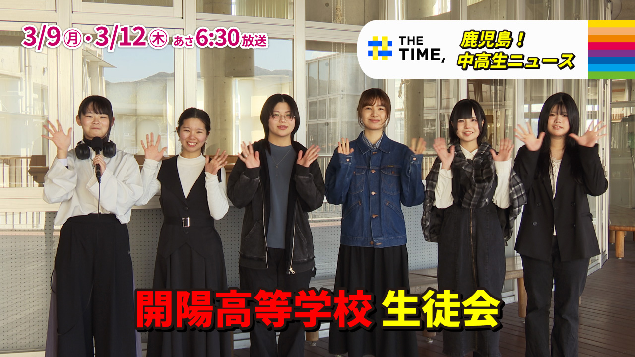 朝の情報番組『THE TIME,』(月~金のあさ5:20-8:00)。 MBCではこの『THE TIME,』の中で、鹿児島の中学校・高校を対象としたミニコーナー「鹿児島!中高生ニュース」を放送します。 部活動のアピールや学校自慢、ユニークな先生、地域との活動など、鹿児島の中高生の頑張る姿をご紹介します!